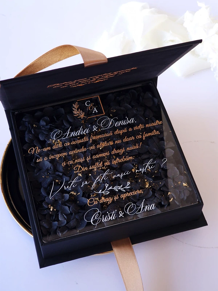 Cutie Cerere Nași – Gold&Black Hortensia | Ediție Limitată (50 bucăți)