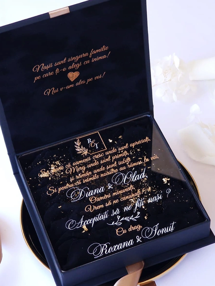Cutie Cerere Nași – Gold&Black Roses | Ediție Limitată (50 bucăți)
